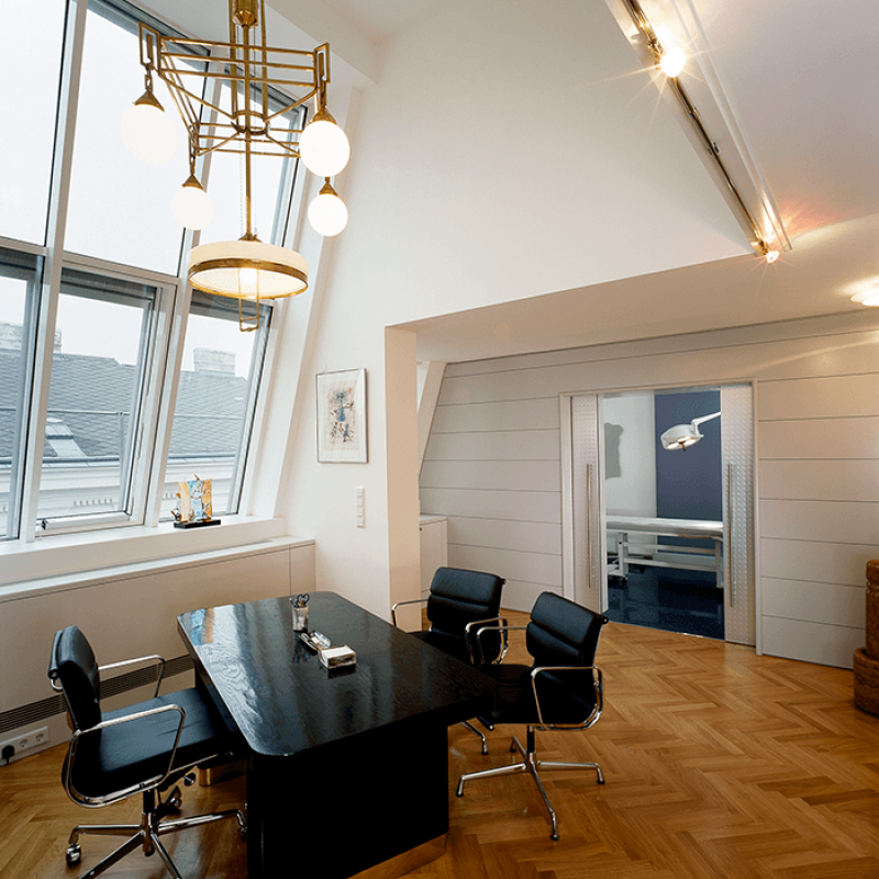 Die großzügigen Ordinationsräumlichkeiten befinden sich im Dachgeschoss eines Altbaus. Zu den Ordinationszeiten werden die Räumlichkeiten ausschließlich von mir genutzt, so entstehen nur in Ausnahmefällen Wartezeiten.