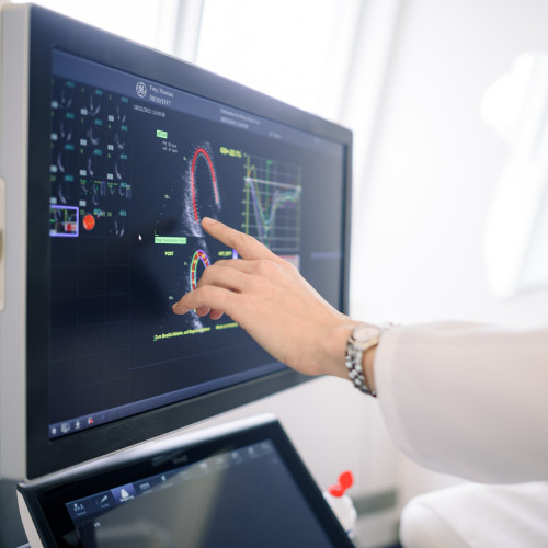 Ein Herzultraschall (Echokardiographie) ist eine schmerzlose Untersuchung, bei der die Pumpfunktion des Herzmuskels und die Größe der Herzhöhlen beurteilt werden können. Außerdem können die Herzklappen vermessen werden (Doppler-Echokardiographie) und so Erkrankungen der Herzklappen diagnostiziert werden. Diese Untersuchung kann jederzeit ohne Vorbereitung durchgeführt werden und führt zu keiner Strahlenbelastung. Je nach Fragestellung dauert die Untersuchung 15 bis 30 Minuten.